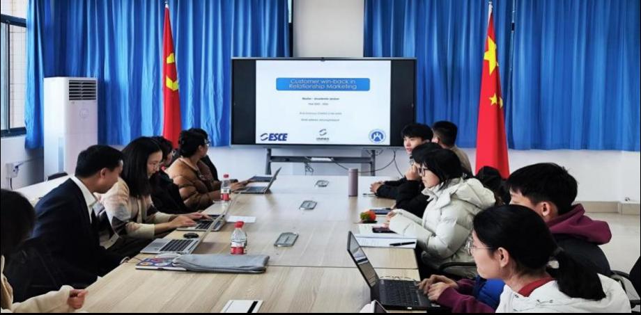 互动交流环节,研究生们围绕中法学生学习思维差异、数字工具对客户赢回效率的影响等问题与Anthony展开探讨。Anthony结合自身丰富的国际学术研究经历与跨文化交流经验,逐一回应学生疑问,既分享了法国高等教育体系下的学术培养模式,也为中国研究生开展国际学术合作、拓宽跨国研究视野提供了切实可行的建议。