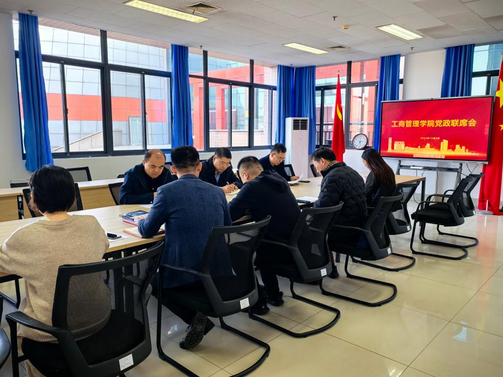 12月9日,副校长刘旻航到工商管理学院指导党政联席会,并调研学院发展建设情况。学院领导班子成员参加会议。