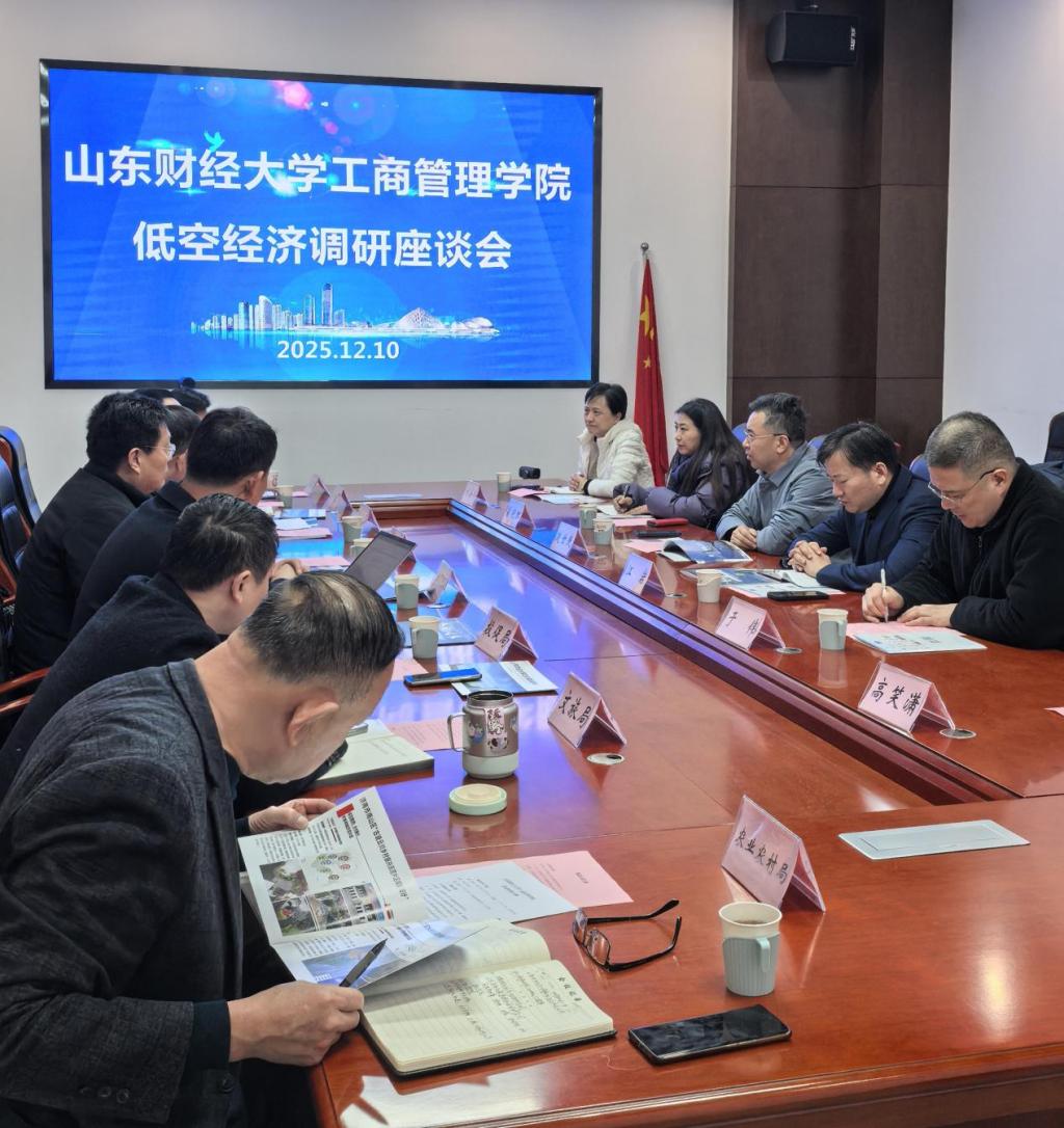 赵世民介绍了山东财经大学及工商管理学院的办学规模、学科特色与产学研成果,希望以此次座谈会为契机,在低空经济政策体系构建、项目规划落地、市场风险防控等领域深化校地企合作,实现资源共享、优势互补。旅游管理系主任于伟教授、刘海玲副教授结合学科优势,围绕低空经济与文旅融合、城乡产业协同发展提出具体建议,从产品创新、线路设计、品牌打造等维度为产业创新路径提供了切实可行的思路。