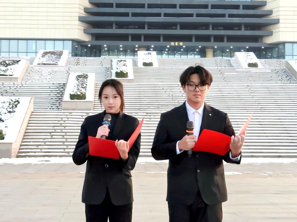 工商管理学院学生叶梓涵、张春玉还朗诵了《青春中国》节选。他们用激昂的语调、饱满的情感,抒发了新时代青年听党话、跟党走,矢志投身民族复兴伟业的坚定决心与豪迈情怀。