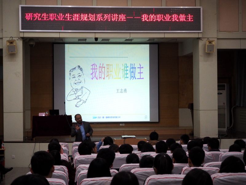 本次讲座是由校研究生工作部主办、工商管理学院承办的研究生职业生涯规划系列讲座之一。