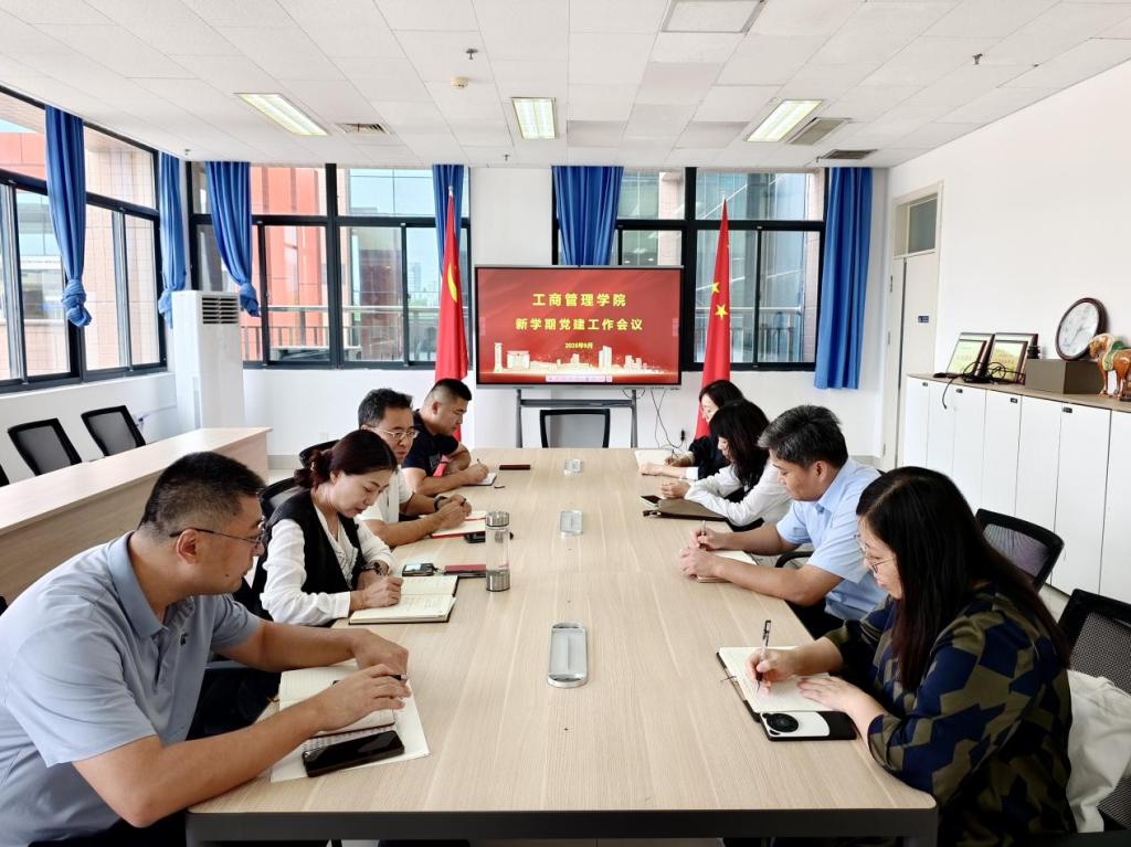 9月4日下午,工商管理学院在逸夫楼208会议室召开新学期党建工作部署会。会议由学院党委书记赵世民主持,党委副书记彭艳红、郑大伟和全体教工党支部书记参加。